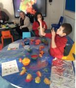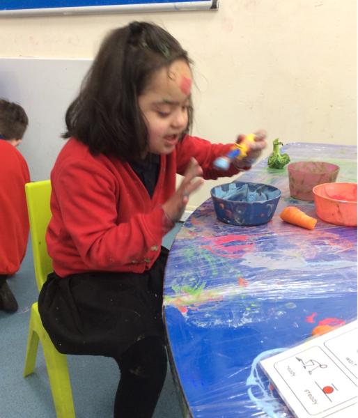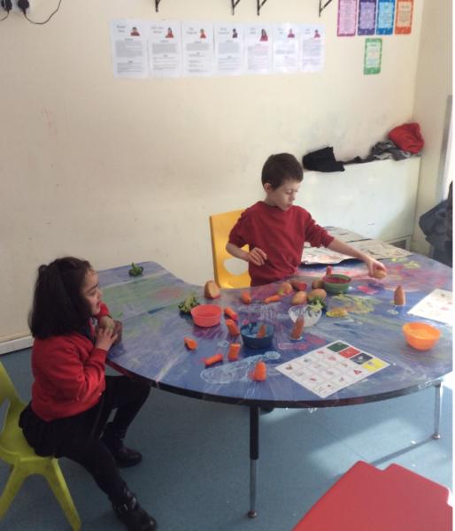 The children experimented with different vegetables like sweet potatoes and broccoli, discovering the unique textures and patterns each one could make. They then used their creations to decorate our cling film and foil-covered tables, turning our classroom into a gallery of edible art.