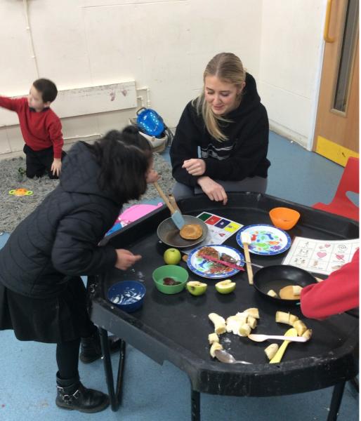 To encourage independence and decision-making, we used choice boards that allowed each child to select their favourite topping. From fruity options to other tasty additions, the children loved making their own choices and personalising their pancakes.