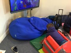 We complete different activities from our personalised physio programmes each day. Some of us are working hard at strengthening our neck muscles on the wedge.
