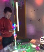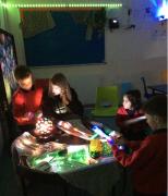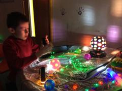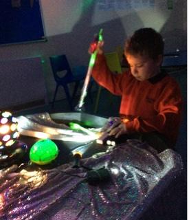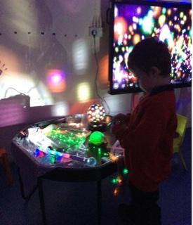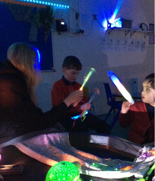 We use sensory lights, torches, fairy lights and soft mood lighting to make our classroom feel truly enchanting. We look at sparkly fabrics, watch bubbles float through the air, and explore reflections in mirrors. Sometimes it feels like we are in our own little world of light and colour.