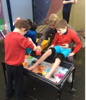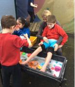 During our water play sessions, the children enjoy using their hands and even their toes to explore the water. They love feeling the different sensations as they splash, pour, and move the water around. These simple moments provide a wonderful sensory experience, allowing the children to discover how water feels, moves, and changes.